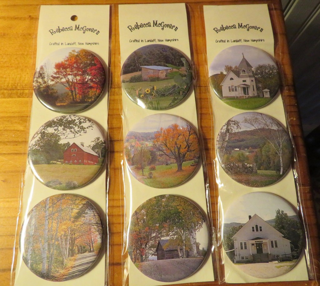 I like the state of NH clock or the pkg of magnets on the right that has the town buildings….hint, hint…or I will pay for them! Me >