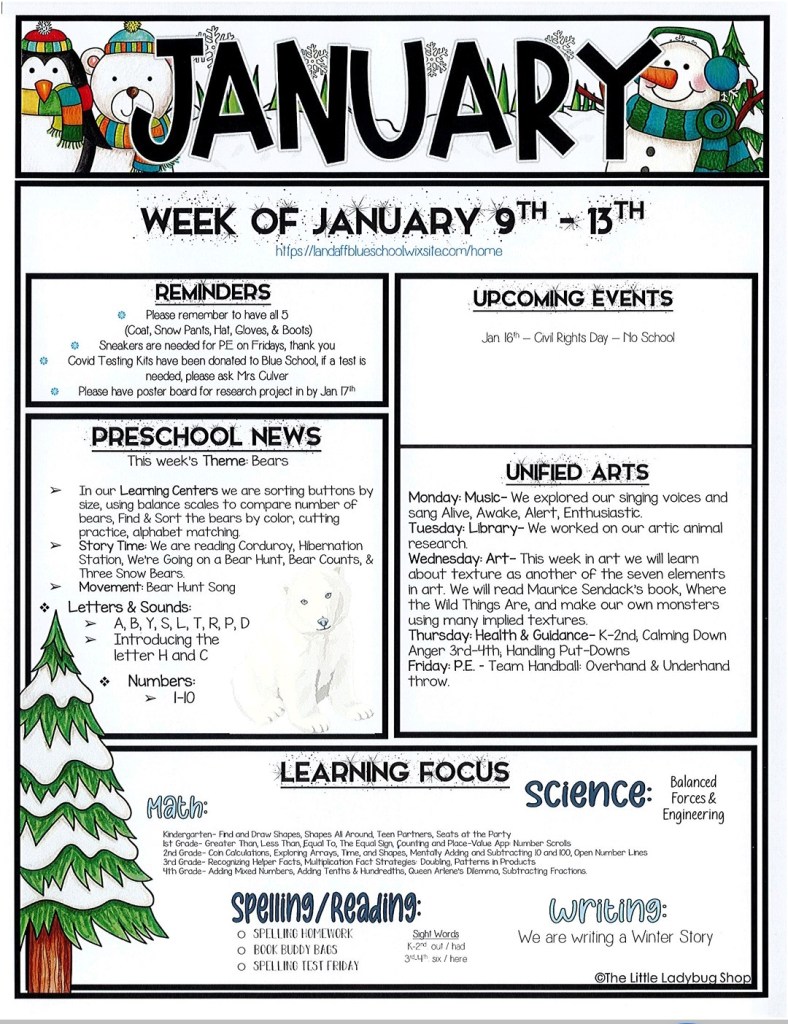 Blue School News sandybrackett / January 14, 2023 From the desk of Molly Culver, Teaching Principal Landaff Blue School blue-school-news-january-12Download Share this: Click to share on X (Opens in new window) X Click to share on Facebook (Opens in new window) Facebook Like Loading...