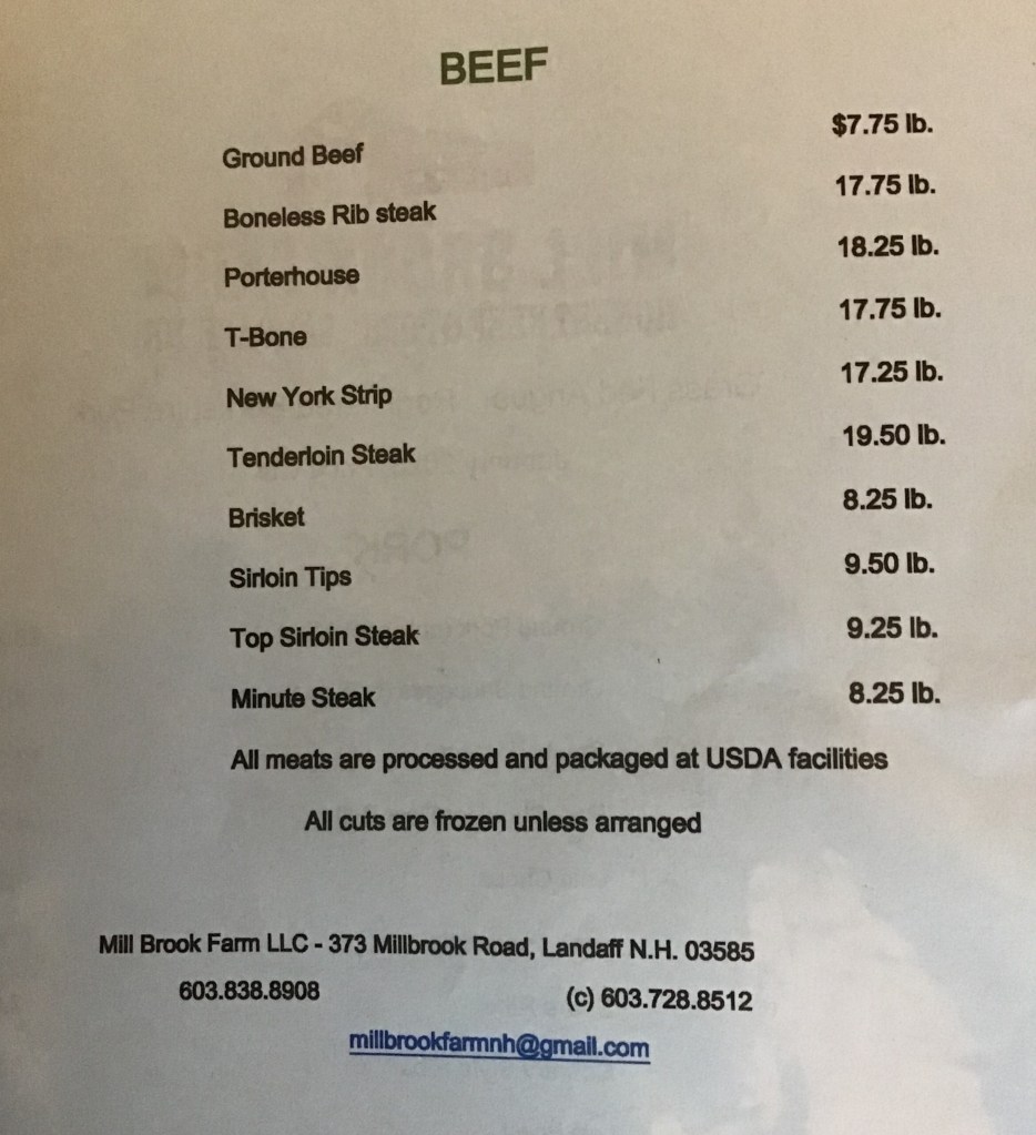 Nothing better than local grown Angus Beef and Gourmet Berkshire pork . Notify the farm for details. House – 603-838-8908. Harry’s cell – 603-728-8512.