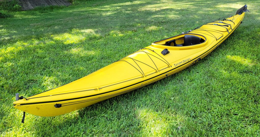 Current Designs Breeze sit-in kayak with rudder and foot controls in great condition. Length 13 1/2 feet, width 25 inches. Includes life jacket, spray skirt, cockpit cover, and bailer. Has paddle holder on side and rigged for an anchor for fishing (anchor not included) as well as for adding a Scotty fishing rod holder. $500.