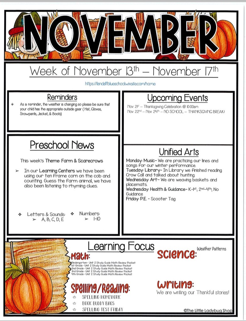 Blue School News sandybrackett / November 25, 2023 From the desk of Molly Culver, Landaff Blue School Teaching Principal: Share this: Share on X (Opens in new window) X Share on Facebook (Opens in new window) Facebook Like Loading...