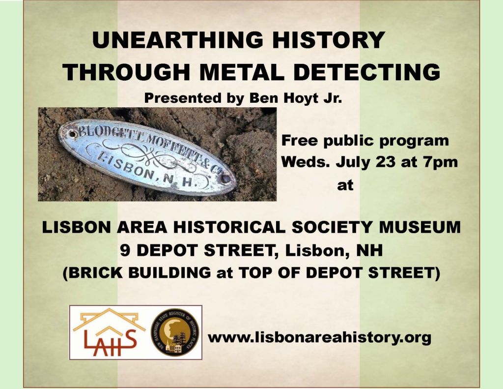 On Wednesday, July 23 at 7pm the Lisbon Area Historical Society Museum is offering a free program – Unearthing History Through Metal Detecting.