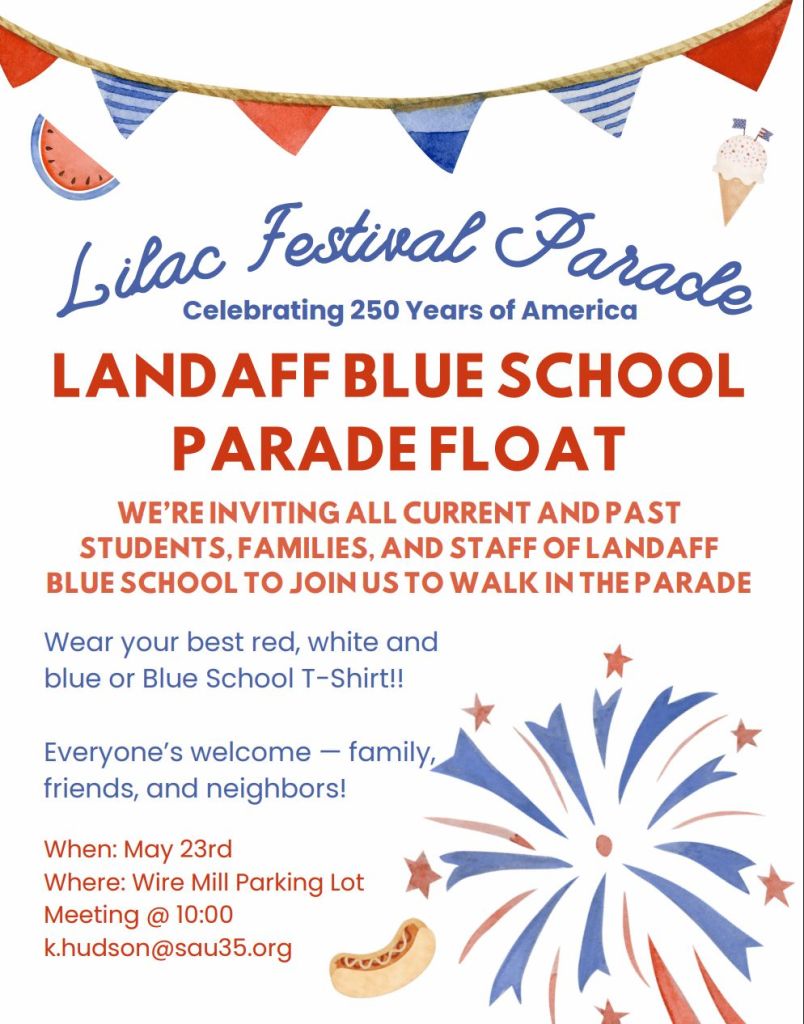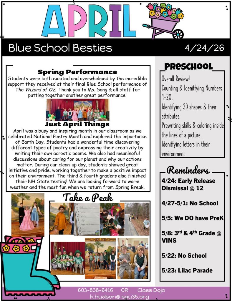 Here is this week’s newsletter as well as flyers/invitations to upcoming Blue School Events!